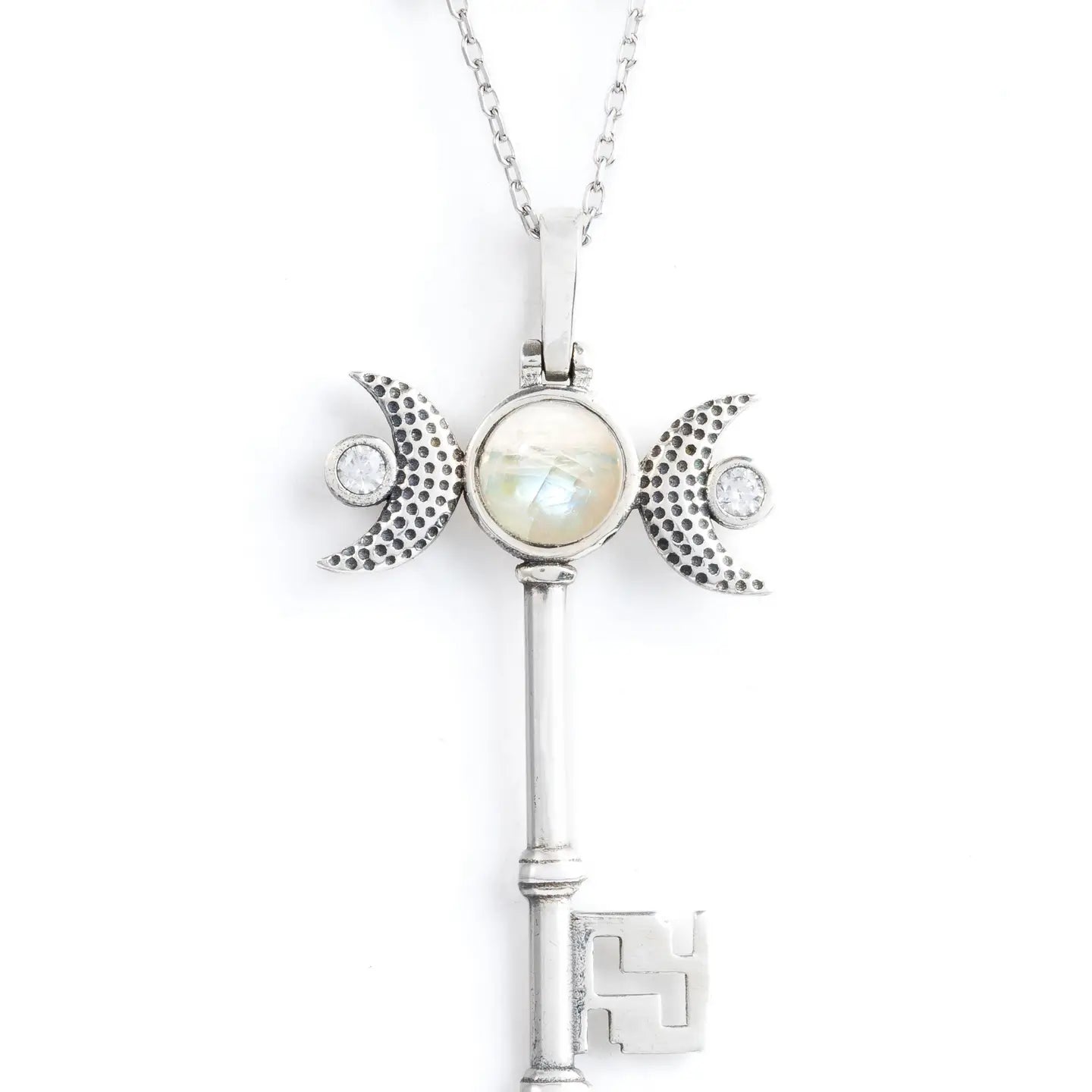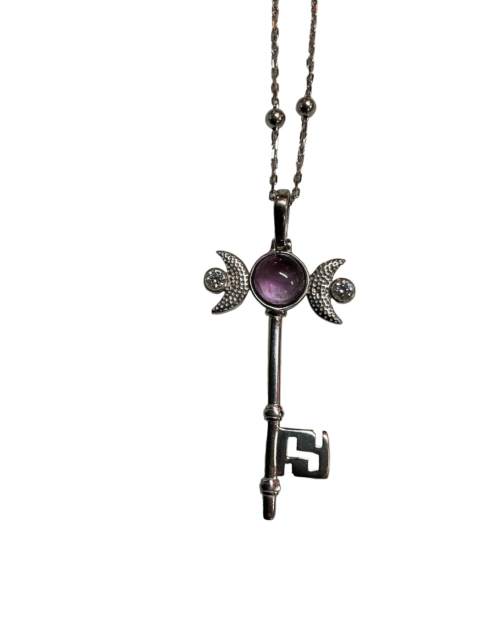 Handcrafted with intricate detail, this talisman honors Hecate, the Witch Queen of the Crossroads — Keeper of the Keys and Guardian of the Mysteries. Since ancient times, keys have been sacred to Hecate, symbolizing wisdom, passage, and the power to unlock hidden realms. Wearing this key marks you as one who can open the gates of transformation and walk between worlds. Hecate — goddess of witchcraft, the moon, and the unseen — rules over earth, sea, and sky. She carries the torch of the Old Ways, illuminating the liminal spaces between life and death, shadow and light. Each pendant is adorned with delicate Cubic Zirconia accents and comes with a dazzling beaded sterling silver chain — a piece that embodies both mystery and grace.