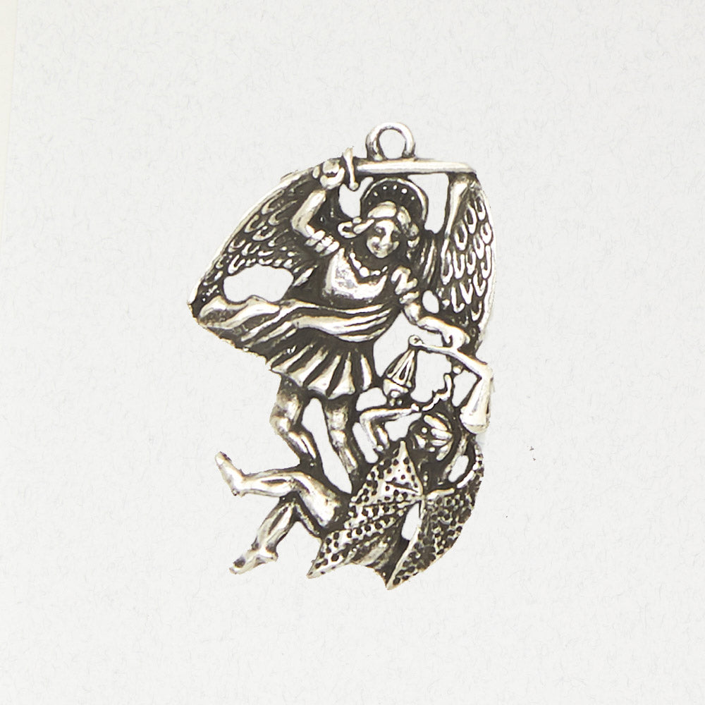 "Saint Michael, Archangel, defend us in battle. Be our defense against the wickedness and snares of the evil in this world. Prince of the heavenly host, by the power of God, thrust all evils and all spirits who prowl the world for the ruin of souls into Hell. Amen." Saint Michael is one of the archangels - The angels who existed before the creation of the world. Michael means "Who is like God" and his name was the war cry of the angels in the war fought in heaven against Satan and his followers. Saint Michael is one of the oldest beings in creation, having been created before the world. His power over Satan makes him a powerful force for the protection for those who revere his image.
