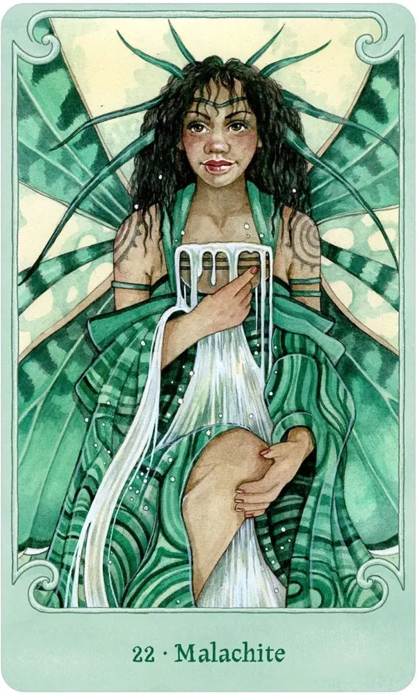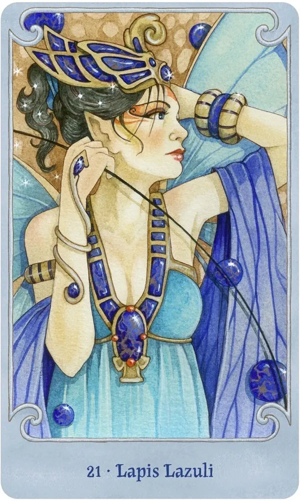 Fairies have been with us forever. Spun of light and shadow, these mysterious beings are timeless nature spirits who belong to the wild and carry all its wisdom and power. They connect us to a vibrant, enchanting world where anything is possible. Gemstones and crystals, too, have always held the promise of magic. They’ve been used as amulets and talismans — called on to protect or heal, to grant clairvoyance and prophecy and travel into other realms. In this 40-card deck, the power of fairies and gems come together through the luminous paintings of Linda Raven­scroft and the book of oracles. Each card will bring you insight from the world of Fairy. Enter this enchanted realm to befriend the spirits of earth and sky, and to encounter the treasure of your own soul. Set includes 40 iridescent silver gilt-edged cards, organza pouch and 204-page guidebook, packaged in a magnetic hinged, foil-accented box.