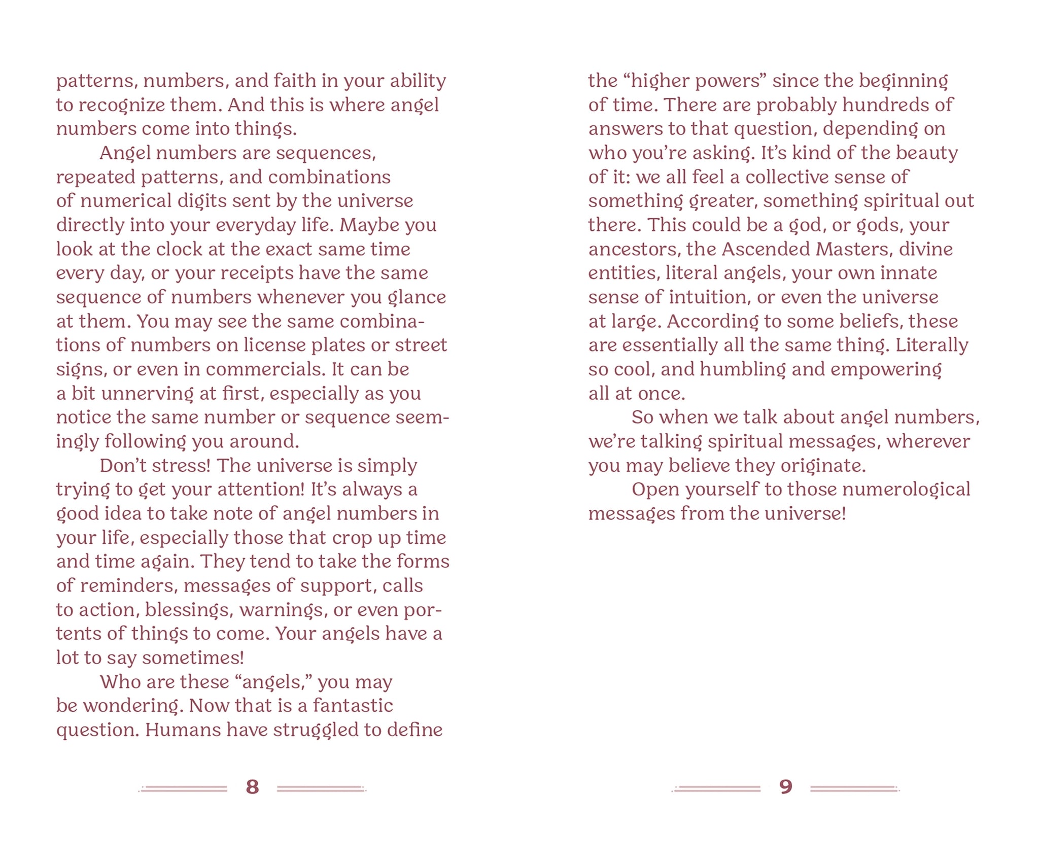 Angel numbers are repeated numerical sequences that are said to be messages from the universe. If 11:11 appears on the clock, is printed on a receipt, or materializes as if by magic on a nearby street sign, it may be a higher power predicting that exciting things are on the way. If you see the number 777, it could be the universe with a message to take it easy and rest a bit. 888? Whatever is happening, it's the right path to follow! This bright, easy-to-use oracle deck channels the energy of such angel numbers so that anyone can use their power to bring amazing synchronicity and good fortune into their lives. Created and designed by the popular Pulp Girls duo, this deck will have a contemporary look and hit just right with the same spiritual seekers who are among their 1 million fans on Instagram. Card Deck; 3 7/8 x 5 3/8 inches; 128 pages.