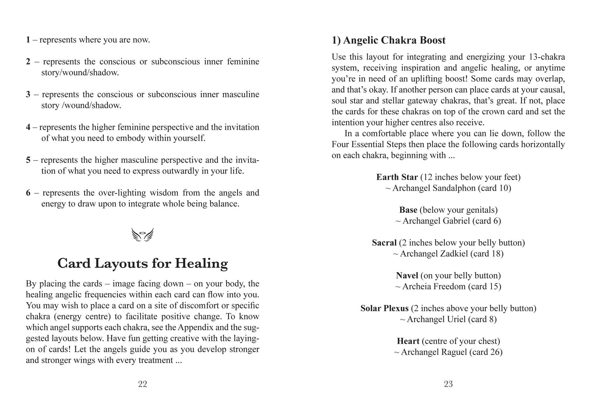 • The accompanying guidebook introduces the Archangel or symbol of each card, along with an angel message, a blessing, an expanded card meaning, a reverse card meaning, and an exercise to integrate the angels’ energies into your life